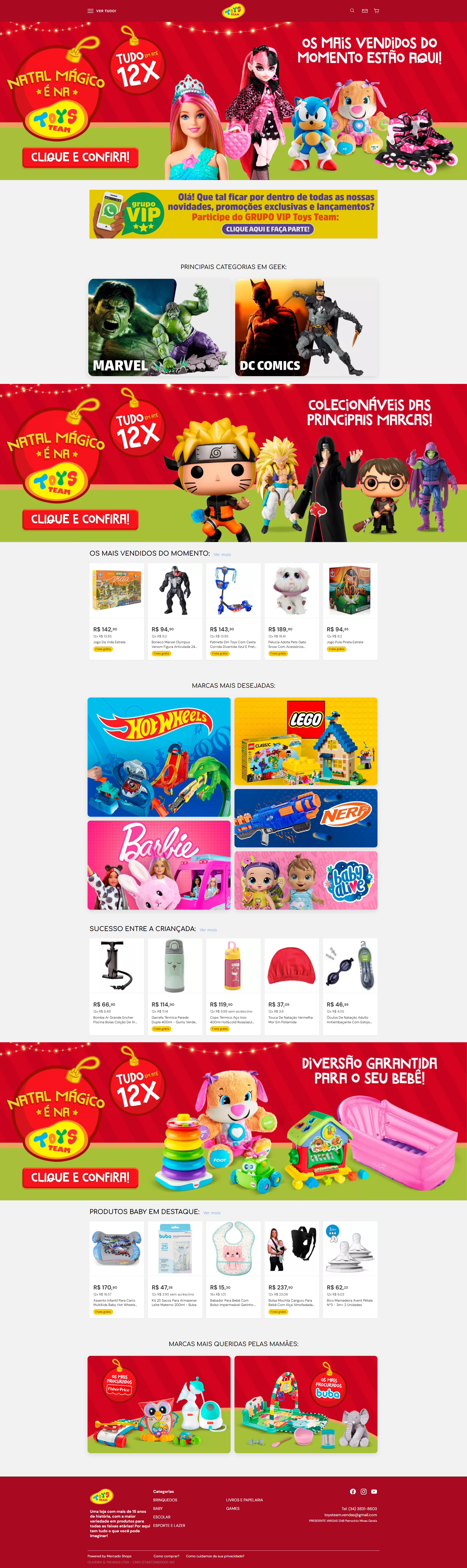 Os banners abaixo foram desenvolvidos especialmente para o e-commerce da Toys Team, com foco em destacar produtos de diferentes categorias e atrair a atenção do público logo nos primeiros segundos de navegação. Cada peça foi criada levando em consideração elementos essenciais, como hierarquia visual, clareza na comunicação, apresentação estratégica dos produtos e estímulo ao clique.