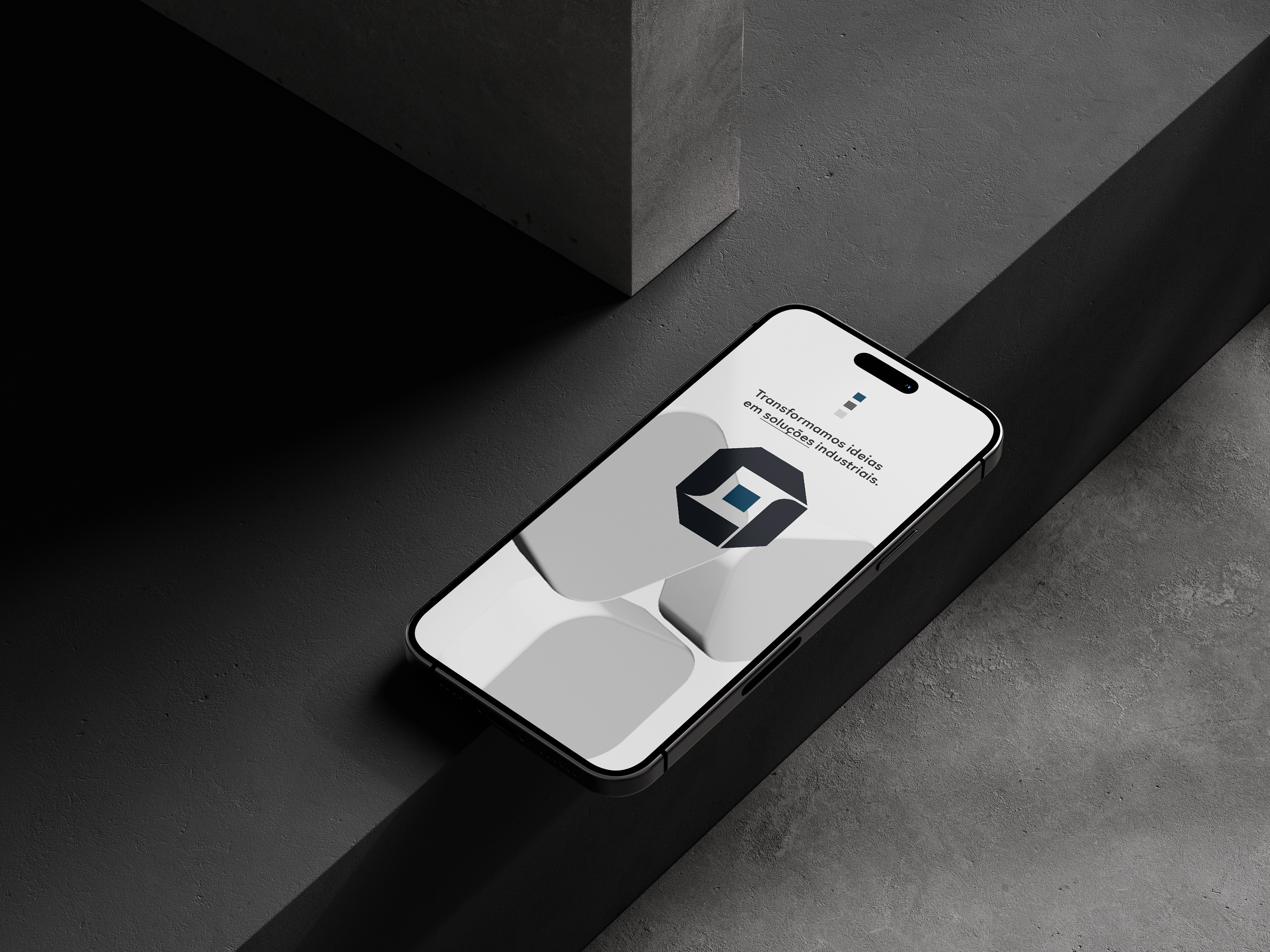 Com linhas firmes e traços geométricos, o design evoca a linguagem do universo industrial e tecnológico, ao mesmo tempo em que transmite confiança e sofisticação. A escolha da tipografia e das cores reforça o posicionamento da marca como uma ponte entre a engenharia de precisão e a criatividade.