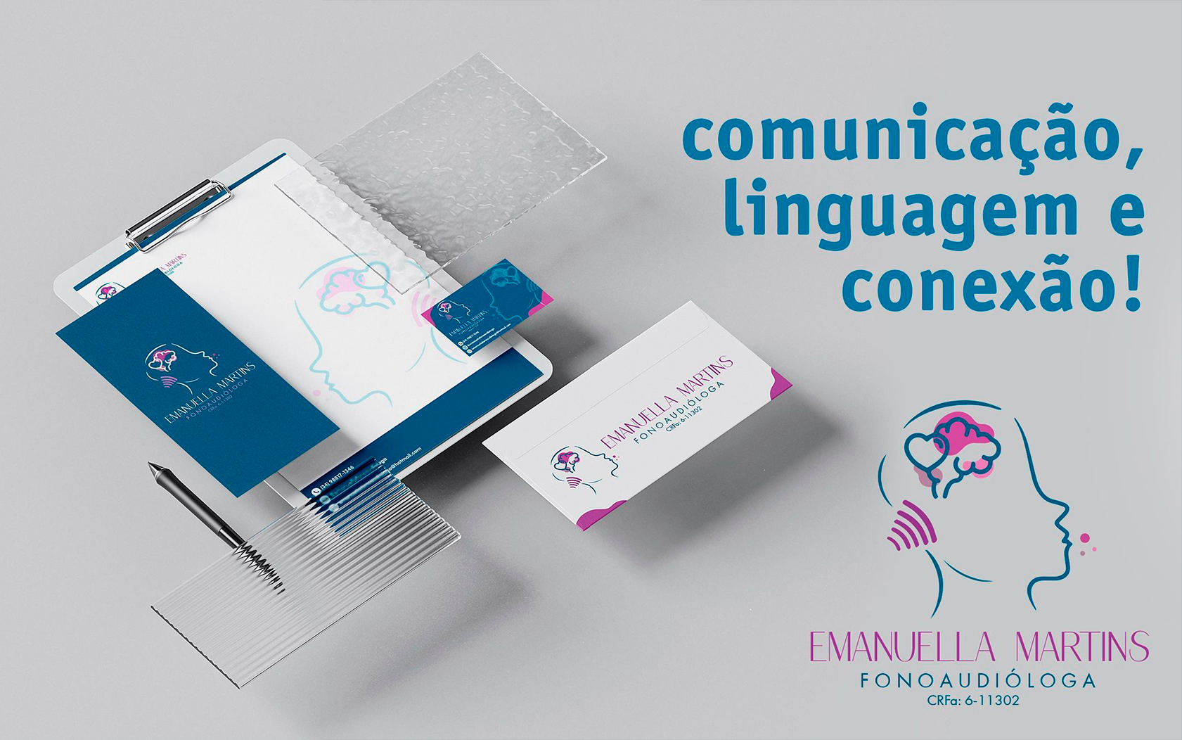 Identidade Visual desenvolvida para a fonoaudióloga Emanuella Martins, que atua com foco em atendimento de crianças e jovens, desenvolvendo habilidades sociais, cognitivas e de comunicação.