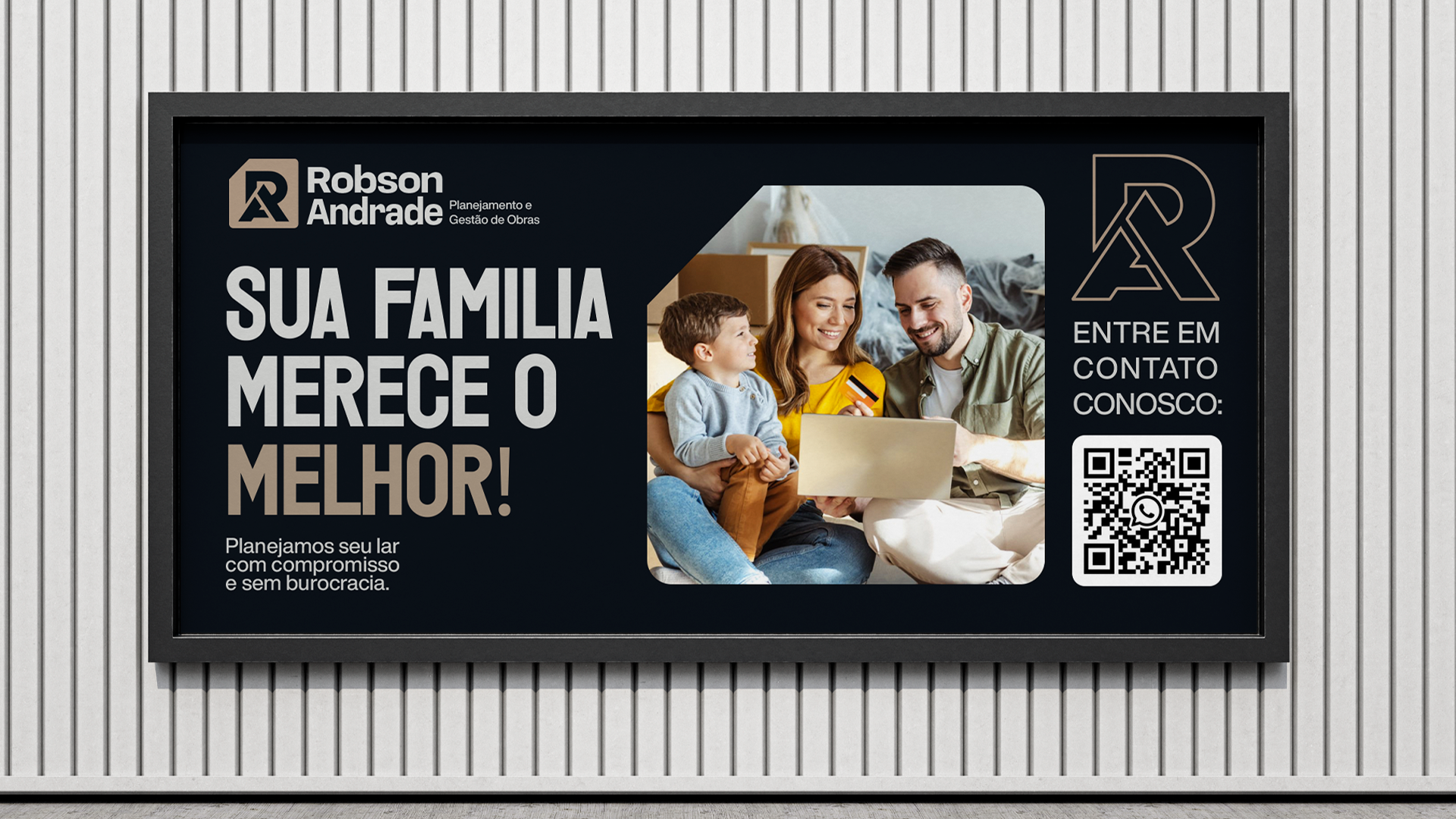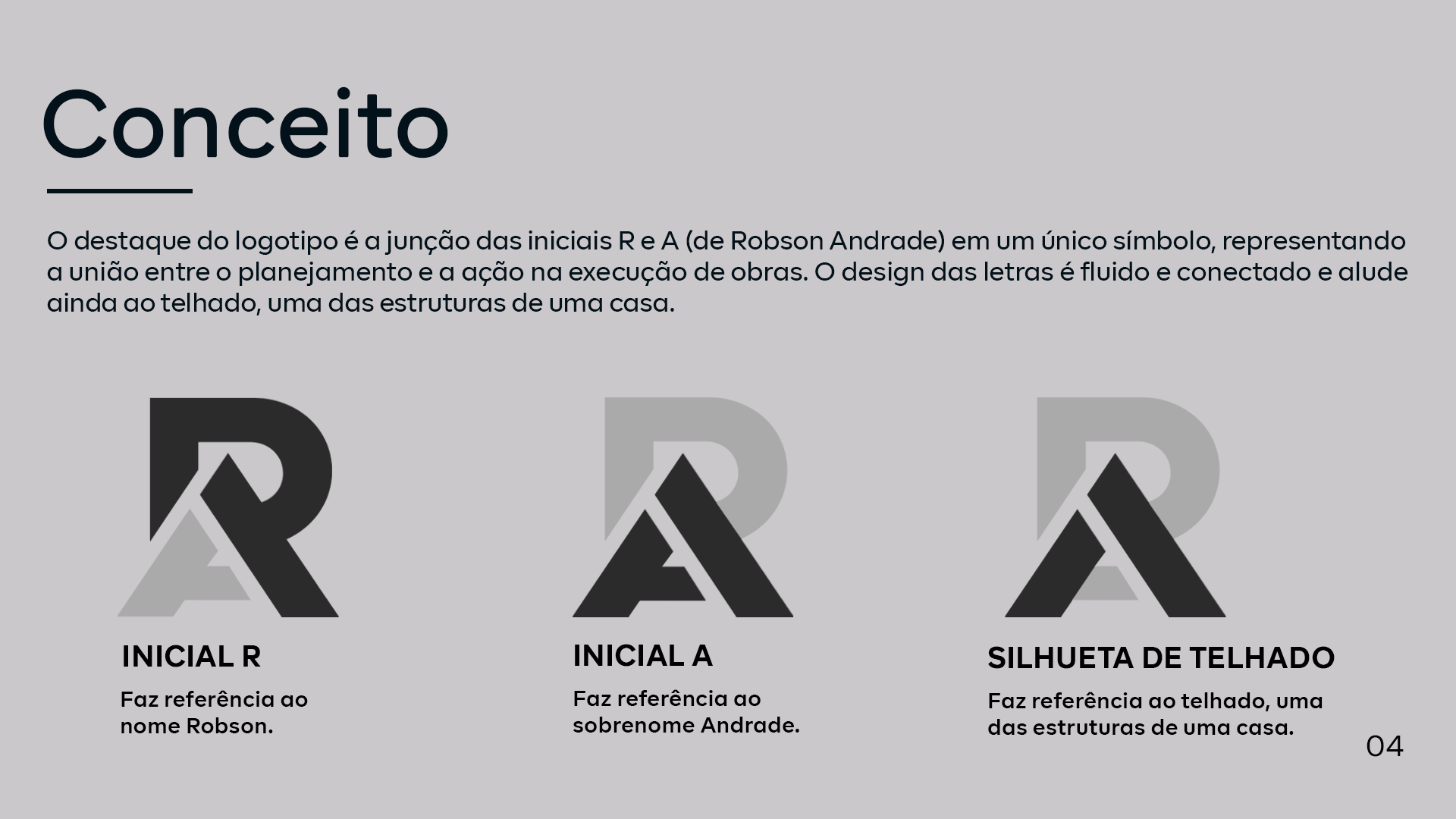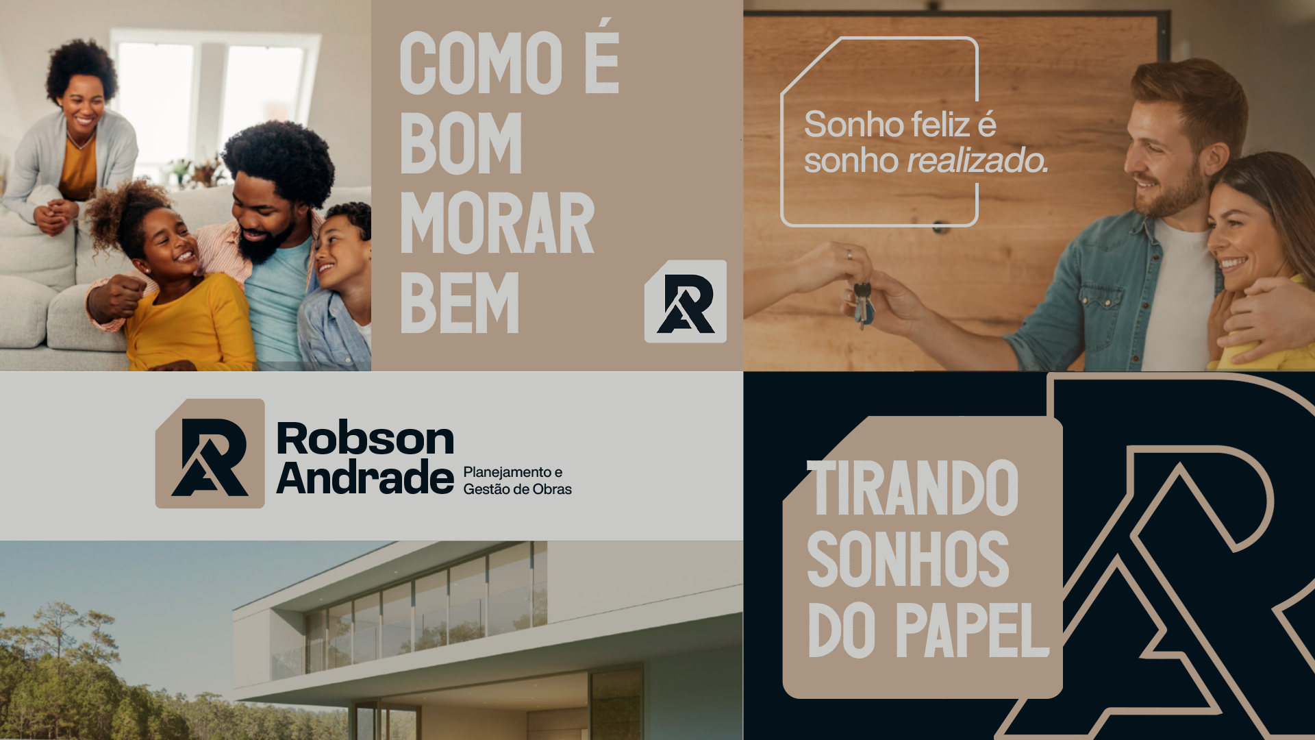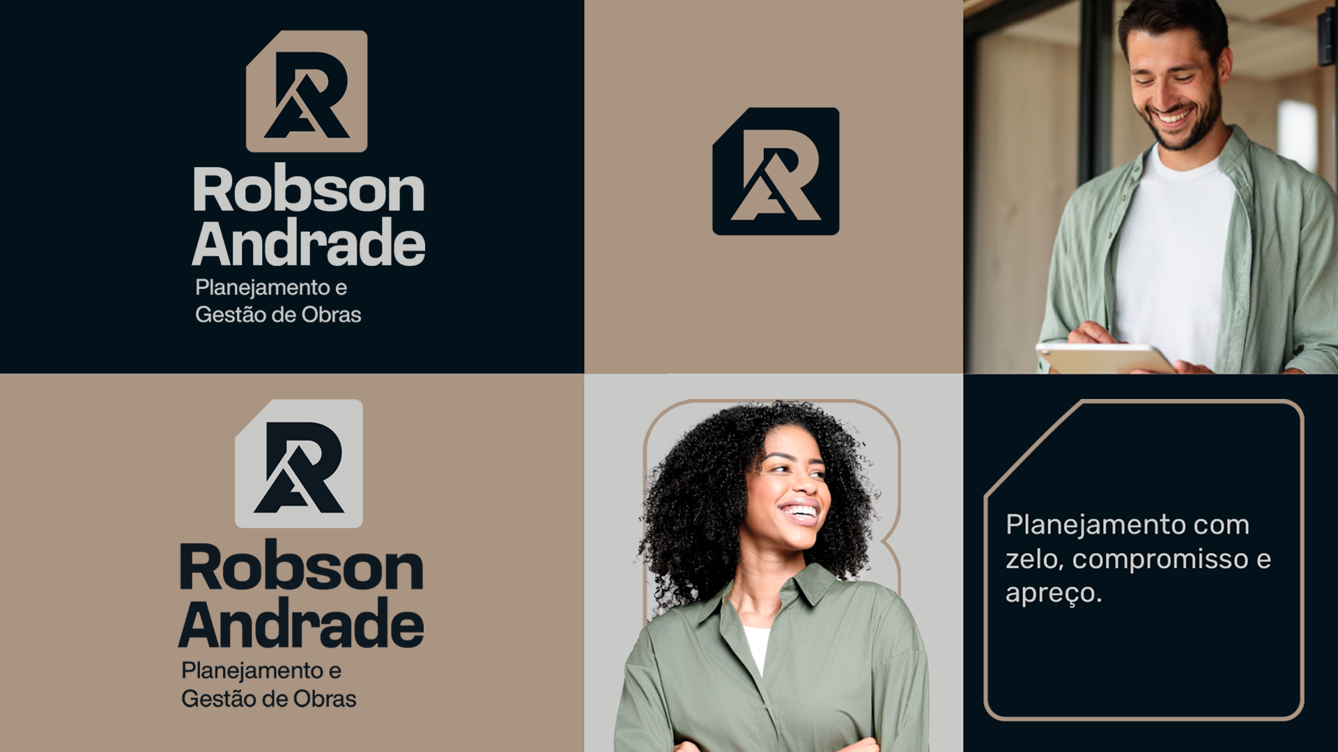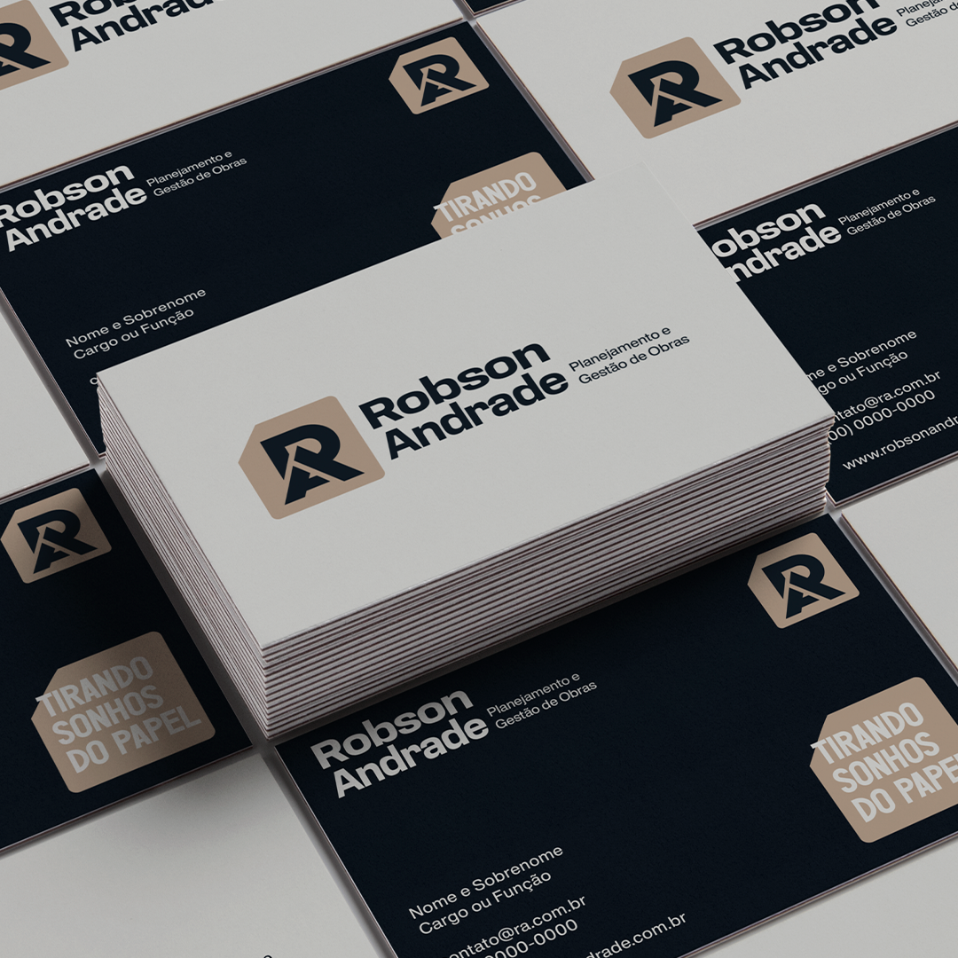 Este conceito traduz de forma elegante e funcional a personalidade de Robson Andrade, criando uma marca que se destaca pelo equilíbrio entre modernidade e relevância no setor de construção.