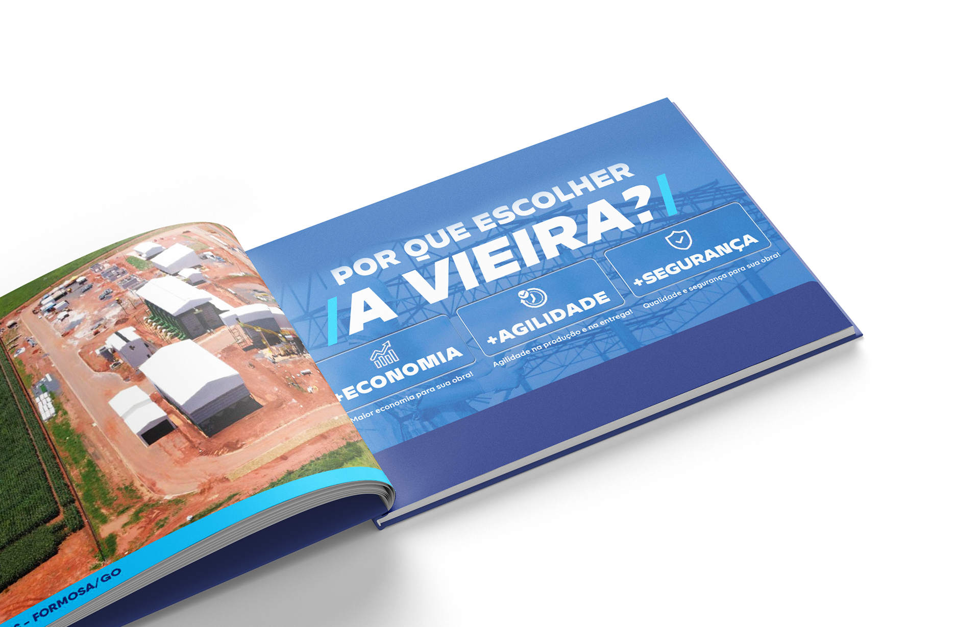 Portfólio desenvolvido para a Vieira Construções, situada em Patos de Minas/MG, apresentando a empresa como referência em estruturas metálicas, caldeiraria e manutenção agrícola e industrial, atuante desde 2012. Especializada em projetos civis, atualizações e mecânicas, fabricação e monta galpões, mezaninos, escadas metálicas, silos, entre outros. Comprometida com soluções inovadoras, destaca economia, agilidade e segurança em suas obras. O portfólio apresenta exemplos de projetos realizados e reforça o foco em qualidade, atendimento ágil e satisfação do cliente.